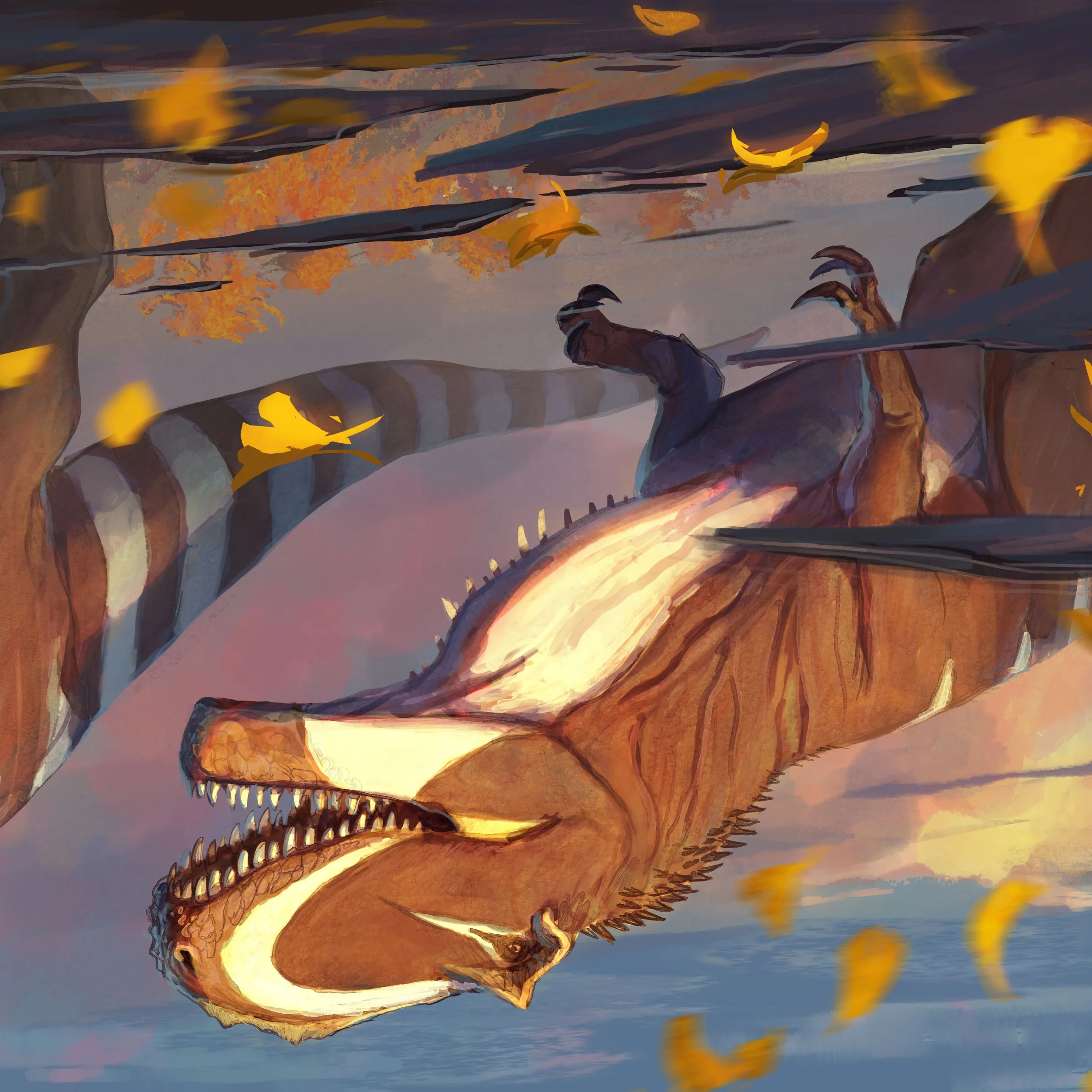 Various illustrations of prehistoric animals and their worlds. Each image is a project folder, containing saved process steps and other additional materials
